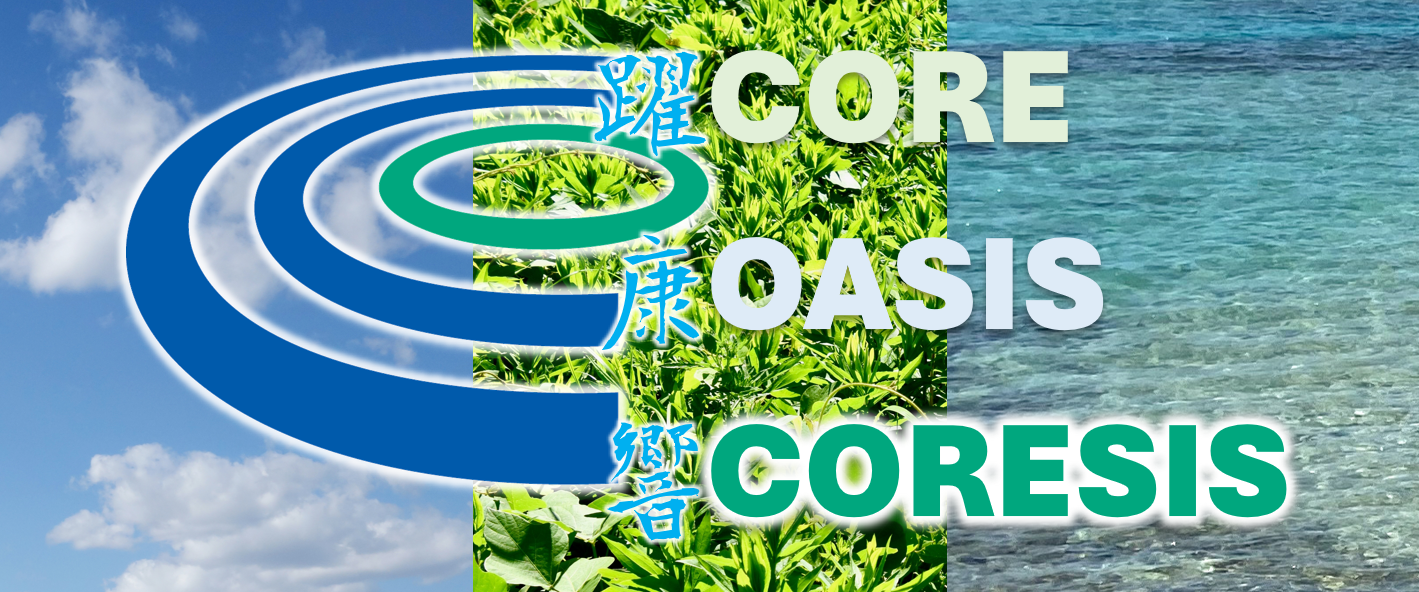 コア(CORE)は英語で核・中心部という意味があり、電気用語では変圧器などの鉄心という意味があります。コア+オアシスの造語で、「オアシスの中心」という意味を持つネーミング。